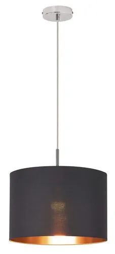 Modern megjelenésű függeszték 1 db foglalattal. 126 cm lelógású, króm színű fém lámpatest 38 cm átmérőjű, szürke és arany színkombinációjú textil lámpabúrával. A lámpatest E27-es foglalatkialakítású, max. 60W teljesítményű fényforrással használható.