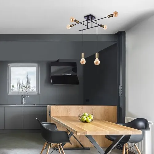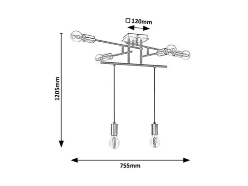 Az indusztriális stílusú Lanny függeszték a nappali, a hálószoba vagy az étkező berendezésének különleges és látványos darabja lehet. A fekete-arany színkombinációban készült lámpa anyaga teljes egészében fém, a hagyományos, körte formájú fényforrások szabadon ülnek a tartókábelek, illetve a lámpa ágainak végén. Négy fényforrás magasan, a szögletes dísztalp közelében helyezkedik el, míg kettő mélyen belóg. A felső, illetve alsó szinten elhelyezkedő fényforrások külön-külön kapcsolhatók fali kapcsoló segítségével. A Lanny hat darab, egyenként legfeljebb 40 W teljesítményű fényforrással használható, a foglalatok típusa E27. Ha otthonos, meghitt hangulatot szeretnénk teremteni, válasszunk a függesztékhez meleg fehér fényű fényforrásokat. A Lanny függeszték méretei a következők: szélessége 755 mm, belógása 1205 mm, beépítési átmérője 120 mm. Ezt a modellt fényforrások nélkül szállítjuk.