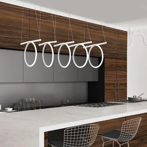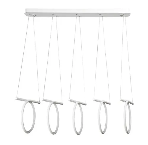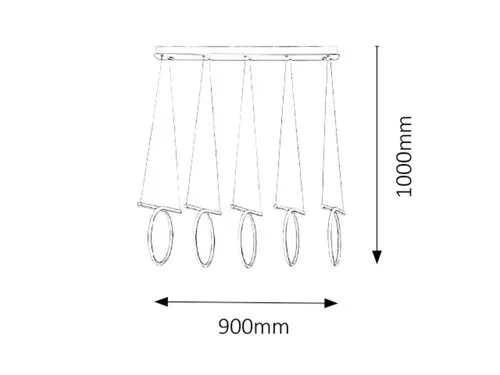 Minimalista stílusú, egyedi megjelenésű függeszték beépített energiatakarékos LED fényforrással. 100 cm lelógású, 90 cm széles, fehér és króm színű, fém és műanyag kombinációjú szerkezet IP20-as védettséggel. A függesztékbe beépített LED fényforrás A energiaosztály besorolású és 108W teljesítmény mellett 6940 lumenes fényerőt, valamint 4000 Kelvines, természetes fehér színű fényt biztosít. 5 év garanciával. A lámpatestben a fényforrás nem cserélhető.