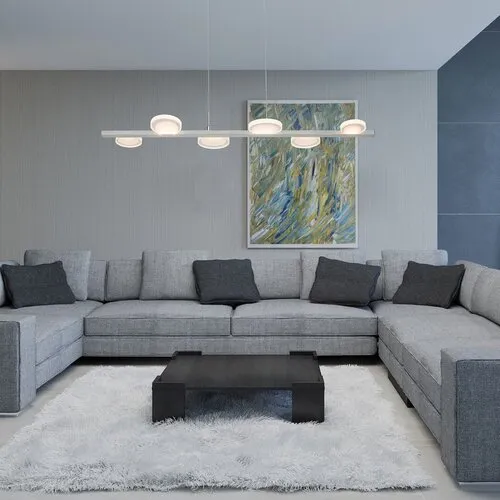 A modern stílusú Lorraine függesztéket elsősorban a nappaliba ajánljuk. Akik a minimál dizájnnal szemben előnyben részesítik az egyedi formatervezésű lámpákat, azoknak bizonyára megakad a szemük ezen a modellen. A fémből készült, szatin króm színű lámpatestet átlátszó búra egészíti ki, a Lorraine különlegességét pedig a holdszerű motívumok és a különböző méretű, kerekded formák adják. Ez a függeszték beépített, energiatakarékos LED fényforrásokkal rendelkezik. Az A energiaosztályba tartozó fényforrások teljesítménye összesen 20 W, fényerejük 1150 lumen, színhőmérsékletük 3000 K, élettartamuk pedig 20 000 óra. A függeszték meleg fehér fénnyel világítja meg környezetét, kellemes, meghitt hangulatot árasztva. A szögletes dísztalppal szerelt lámpa teljes hossza 980 mm, belógása 1500 mm. A Lorraine függesztékre 5 év garanciát vállalunk.