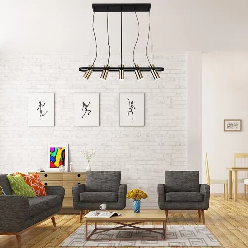 A Raven ötös függesztéket azok figyelmébe ajánljuk, akik otthonuk berendezése tekintetében nem riadnak vissza a vagány, meglepő megoldásoktól. Az indusztriális stílusban, matt fekete-arany színkombinációban készült Raven függeszték dizájnja korántsem nevezhető szokványosnak. A téglalap alakú, matt fekete dísztalppal szerelt lámpa fém testét ugyancsak fémből készült, hosszúkás, henger alakú búrák egészítik ki. Az öt arany színű lámpafejet egy elnyújtott, ovális elem foglalja keretbe. A meleg fehér fénnyel világító függeszték modern nappalink berendezésének stílusos darabja lehet. A Raven beépített LED fényforrásainak összteljesítményük 25 W, fényerejük 2000 lumen, színhőmérsékletük 3000 K. A lámpa szélessége 820 mm, belógása 1200 mm. A Raven függesztékre 5 év garanciát vállalunk.
