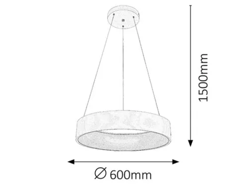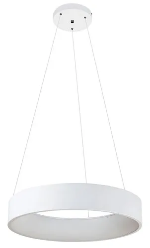 Modern megjelenésű, minimál stílusú függeszték beépített energiatakarékos LED fényforrással. 150 cm lelógású, 60 cm átmérőjű, matt fehér színű fém lámpatest és műanyag lámpabúra. A függesztékbe beépített LED fényforrás 36W teljesítmény mellett 2100 lumenes fényerőt, valamint 4000 Kelvines, természetes fehér színű fényt biztosít. 5 év garanciával. A lámpatestben a fényforrás nem cserélhető!