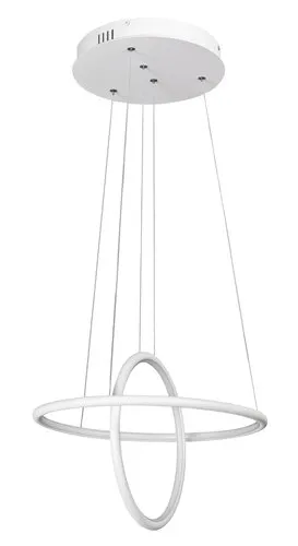 Minimalista stílusú függeszték beépített energiatakarékos LED fényforrással. 100 cm lelógású, 40 cm átmérőjű, fehér és króm színű, fém és műanyag kombinációjú szerkezet IP20-as védettséggel. A függesztékbe beépített LED fényforrás A energiaosztály besorolású és 37W teljesítmény mellett 2300 lumenes fényerőt, valamint 4000 Kelvines, természetes fehér színű fényt biztosít. 5 év garanciával. A lámpatestben a fényforrás nem cserélhető.