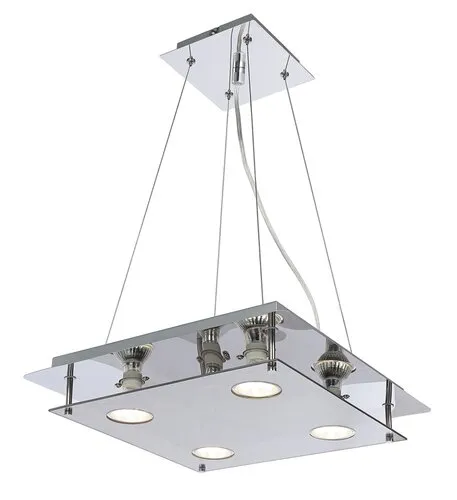 Az igazán merész és látványos világítási megoldások híveit biztosan nem hagyja hidegen a Naomi szögletes függeszték. A 4 db meleg fehér fényű LED fényforrással szerelt, nagy méretű lámpa garantáltan magára vonzza a tekinteteket. A lámpa füstszínű üveg és króm kombinációjával készült, egyedi formatervezéssel. A 350x350 mm-es függesztéket elsősorban a nappaliba vagy az étkezőbe ajánljuk. A cserélhető LED fényforrások egyenként 5 W energiát fogyasztanak, fényerejük 400 lumen, színhőmérsékletük 3000 K, névleges élettartamuk mintegy 20 000 óra. A GU10-es típusú foglalatokba 4 db, egyenként maximum 15 W teljesítményű LED fényforrás helyezhető be. A Naomi szögletes függeszték belógása 1200 mm, nettó súlya 1,2 kg.