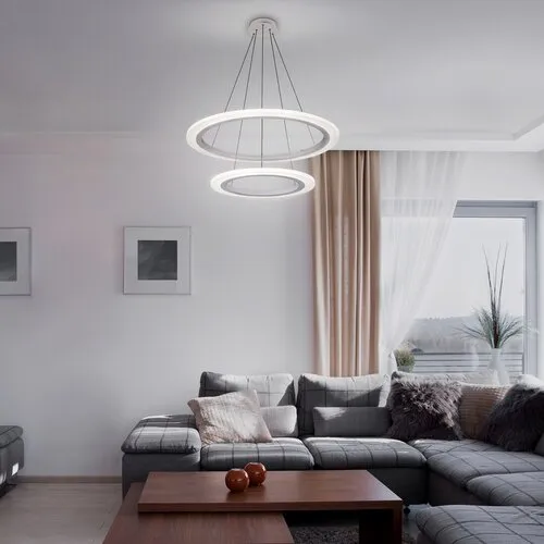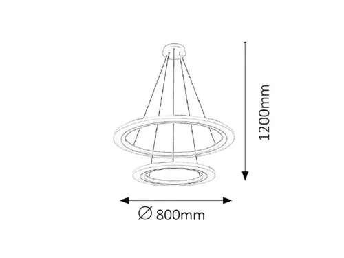 Minimalista stílusú függeszték beépített energiatakarékos LED fényforrással. 120 cm lelógású, 80 cm átmérőjű, ezüst színű, fém és műanyag kombinációjú szerkezet IP40-es védettséggel. A függesztékbe beépített LED fényforrás A energiaosztály besorolású és 62W teljesítmény mellett 4861 lumenes fényerőt, valamint 4000 Kelvines, természetes fehér színű fényt biztosít. 5 év garanciával. A lámpatestben a fényforrás nem cserélhető.