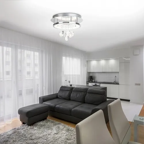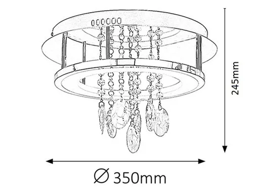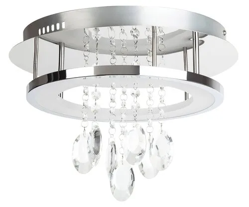 Modern megjelenésű mennyezeti lámpa beépített energiatakarékos LED fényforrással. 35 cm átmérőjű, króm színű fém lámpatest és üvegkristály díszítésű, akril lámpabúra. A lámpatestbe beépített LED fényforrás A+ energiaosztályú besorolás és 24W teljesítmény mellett kimagasló, 2000 lumenes fényerőt, valamint 4000 Kelvines, természetes fehér színű fényt biztosít. 5 év garanciával. 5 év garanciával! 5 év garanciával. A lámpatestben a fényforrás nem cserélhető!