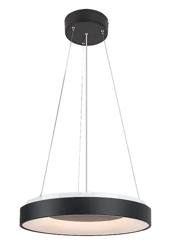 A letisztult formavilágú, kerek Ceilo függeszték nagy fényerőt és rengeteg extrát kínál, ezért sok modern nappaliba nagyszerű választás lehet. A fémből és műanyagból készült fekete modellt fehér műanyagbúra egészíti ki és kerek dísztalp segítségével rögzíthető a mennyezetre. A Ceilo a G energiaosztályba tartozó beépített LED fényforrással rendelkezik, amelynek a teljesítménye 38 W, fényereje búrával 3150 lumen, búra nélkül 3800 lumen, élettartama pedig 25 000 óra. A függeszték színhőmérséklete 3000–6500 K között változtatható, azaz képes meleg, természetes vagy hideg fehér fénnyel világítani. További extrák az állítható fényerő, a memória, az időzítő és az éjszakai funkció. A fényerő és az időzítő távirányító, míg a színhőmérséklet és a memória funkció kapcsoló vagy távirányító segítségével szabályozható. Az akkumulátor feszültsége 1,5 V, kapacitása 400 mAh. A Ceilo függeszték méretei a következők: átmérője 480 mm, belógása 1300 mm, beépítési átmérője 175 mm.