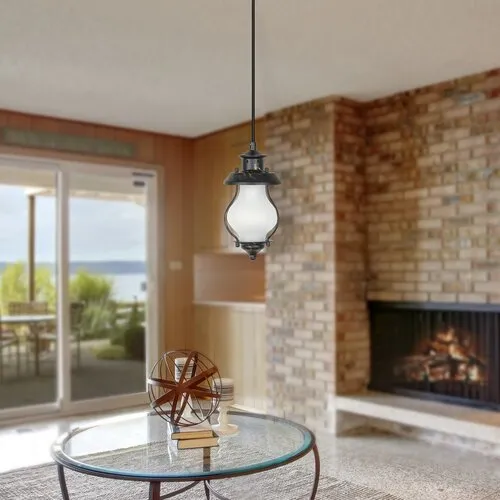 Klasszikus stílusú, rusztikus megjelenésű csillár 1 db foglalattal. 106 cm lelógású, 13 cm átmérőjű, antik arany színű fémből készített lámpatest fehér színű üveg lámpabúrával. A lámpatest E-14-es foglalatú, C37-es típusú, azaz klasszikus gyertya formájú, energiatakarékos LED fényforrással is használható.