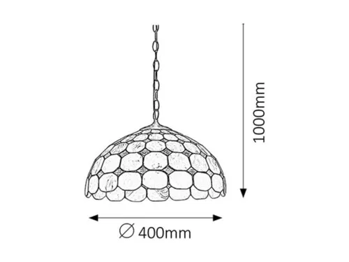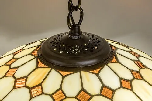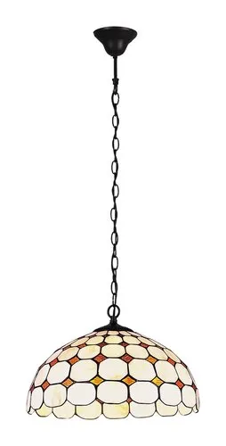 A Tiffany lámpabúrás csillár, egyedi, kézzel készült termék, amely remek választás, ha a klasszikus elegancia mellett egyedülálló, különleges darabot keres. Technikai adatai: Tiffany lámpabúrás függeszték 2 db foglalattal. 100 cm lelógású, 40 cm átmérőjű, bronz színű fémből készített lámpatest színes Tiffany-stílusú üveg lámpabúrával, IP20-as védelemmel. A lámpatest E-27-es foglalatú, max. 2x 60W teljesítményű halogén vagy energiatakarékos fényforrásokkal használható.