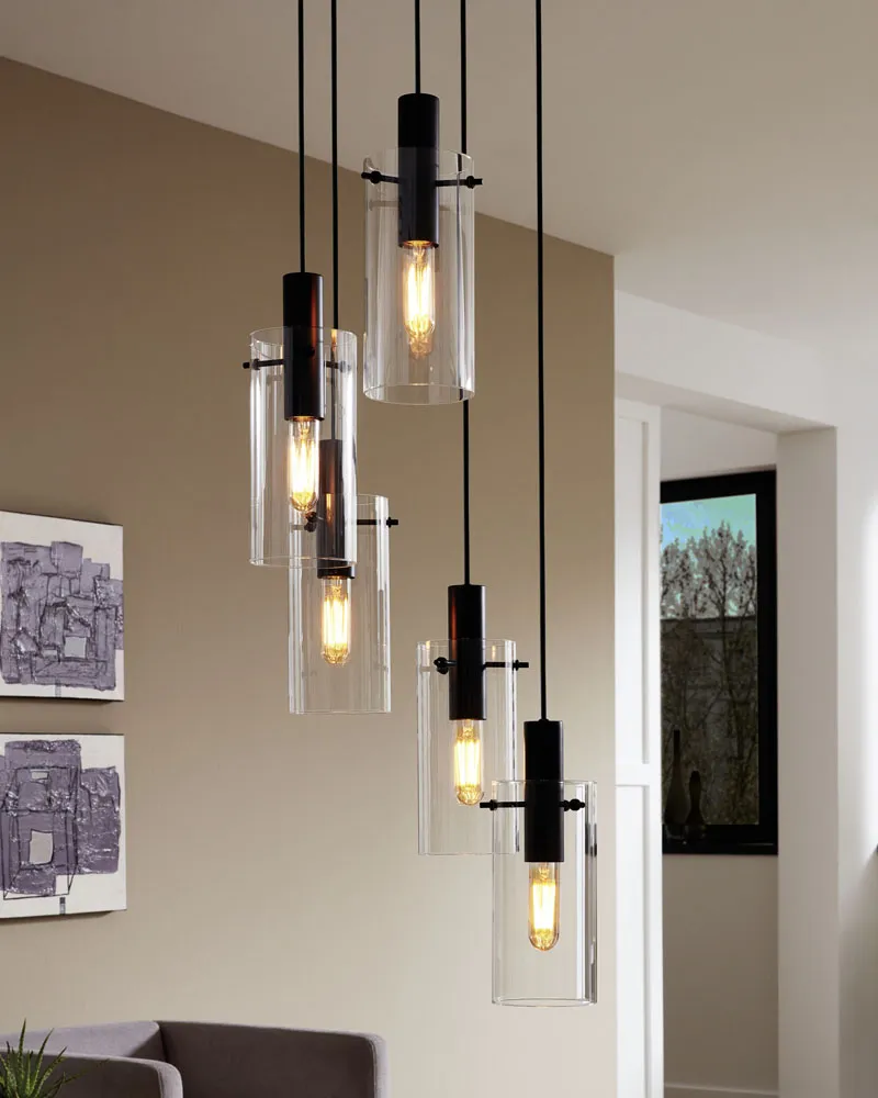 Függeszték E27 5x60W fekete/átl. Montefino