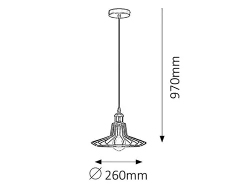 Indusztriális stílusú függeszték 1 db foglalattal. 97 cm lelógású, a lámpatestnél 26 cm átmérőjű, fekete és bronz színű, fémből készített test és lámpaernyő. A lámpatest E27-es foglalatkialakítású, max. 40W teljesítményű fényforrással, így akár a vintage megjelenésű, ST58-as formájú, energiatakarékos filament LED izzóval is használható.
