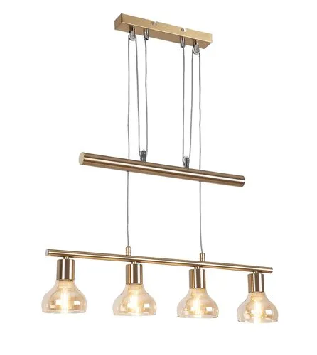 A modern formatervezésű Holly négyes függeszték remek választás lehet egy tágas nappaliba. A lámpa állítható belógásának köszönhetően ezt az elegáns függesztéket nem csak nagy belmagasságú szobákba ajánljuk. A Holly négyes függesztéket borostyánszínű üveg lámpabúra és antik arany színű fém dísztalp teszi különlegessé. A lámpa teljes szélessége 620 mm, maximális belógása 1560 mm. Az E14 típusú foglalatokba 4 db, egyenként legfeljebb 40 W teljesítményű, energiatakarékos izzót tehetünk. A kellemes, meghitt hangulat megteremtéséhez válasszunk meleg fehér fényű izzókat. A lámpát fényforrás nélkül szállítjuk.