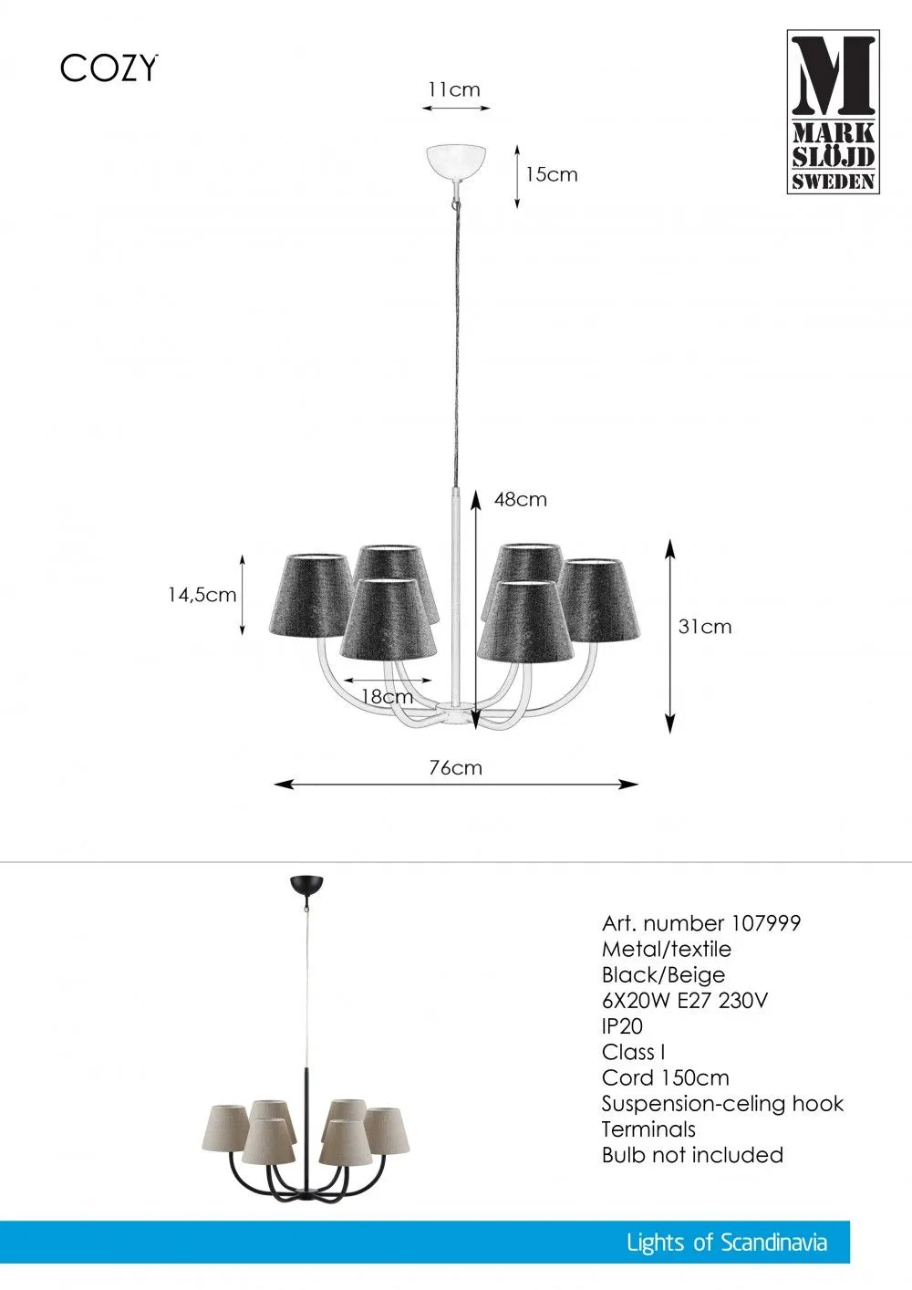 Markslöjd COZY Függeszték E27 6x20W bézs