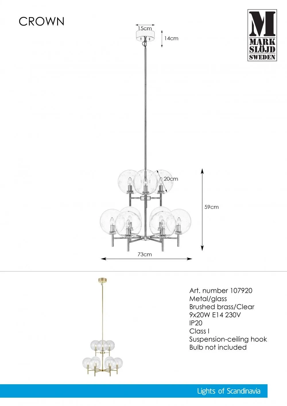 Markslöjd CROWN Beltéri függeszték E14 9x20W sárgaréz