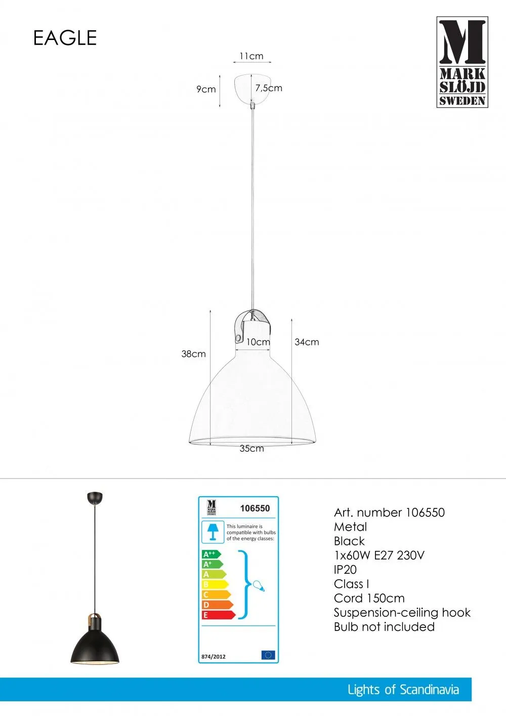 MARKSLÖJD EAGLE Beltéri függeszték E27 60W fekete