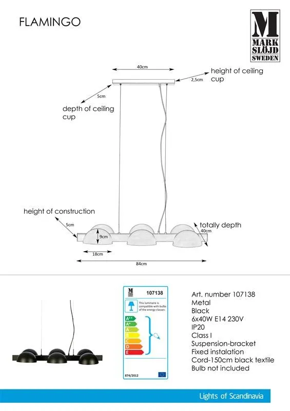MARKSLÖJD FLAMINGO 6 ágú függeszték fekete E14 6x40W