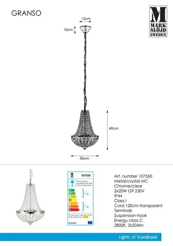 Markslöjd GRANSÖ Függeszték 2L Chrome/MC IP44