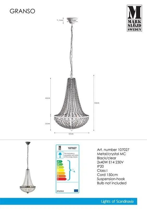 MARKSLÖJD GRANSÖ Függeszték E14 2x40W átlátszó