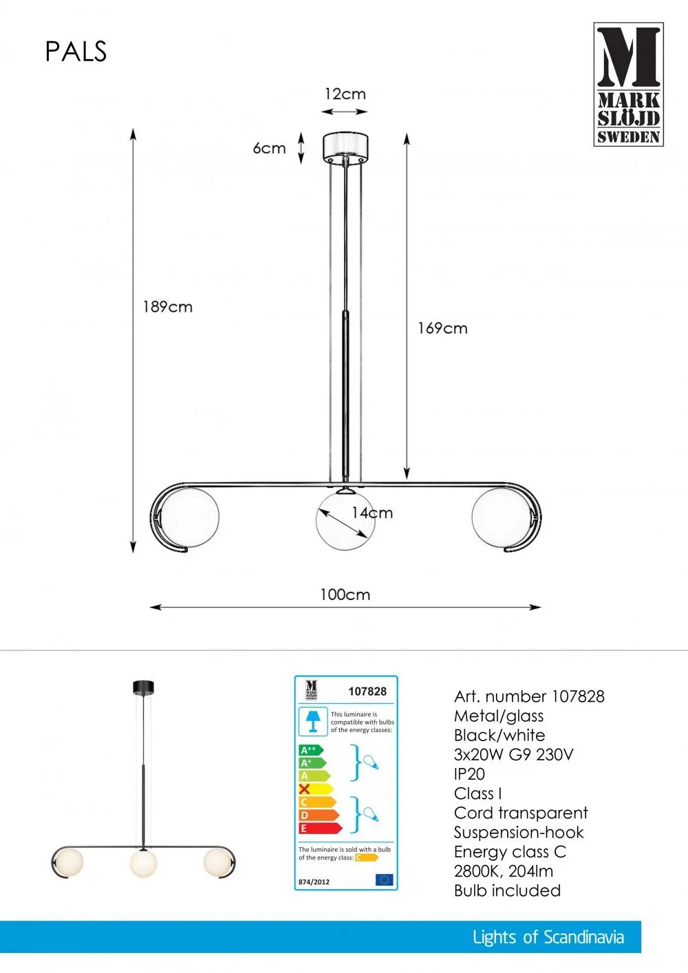 Markslöjd PALS Függeszték 3L Fekete/Fehér