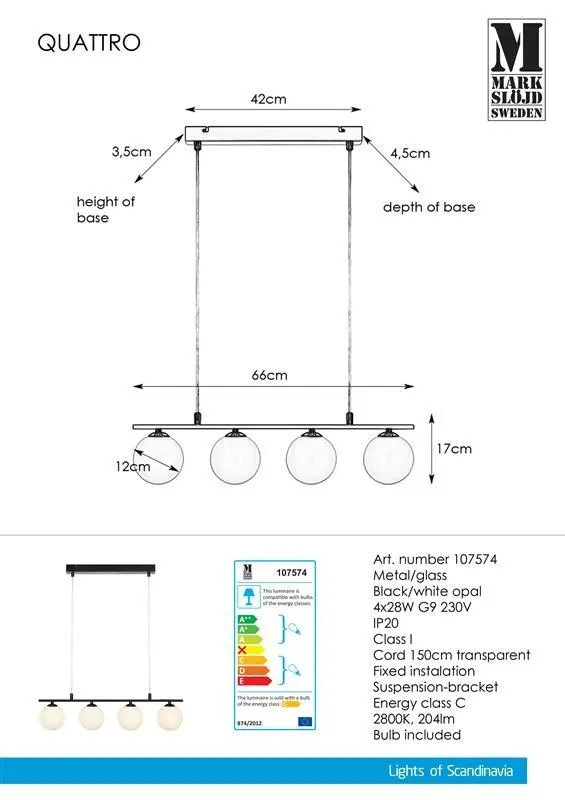 Markslöjd QUATTRO Beltéri függeszték G9 4x28W fekete