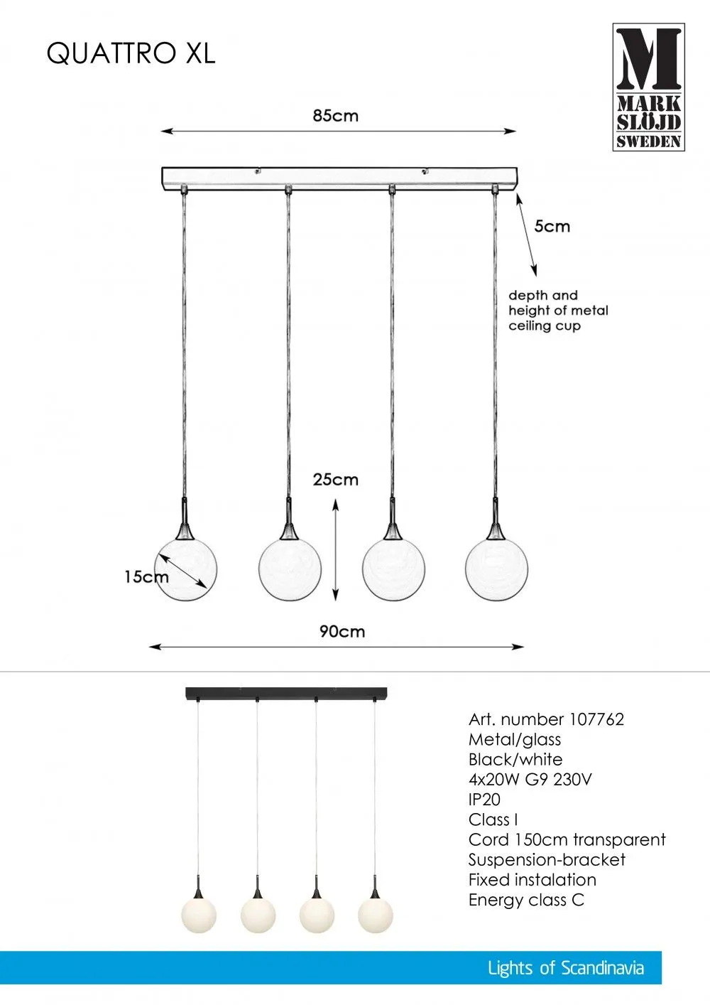 Markslöjd QUATTRO XL Függeszték 4L Fekete/Fehér
