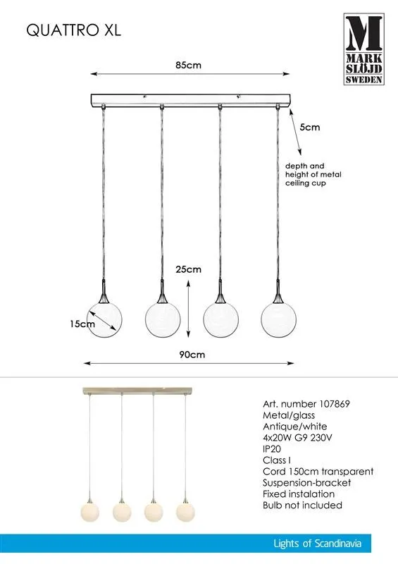 Markslöjd QUATTRO XL Pendant 4L Antique/White