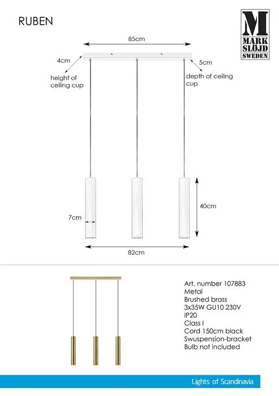 Markslöjd RUBEN Pendant 3L Brushed Brass