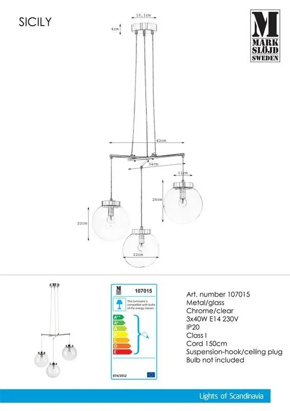 Markslöjd SICILY függeszték 3L Chrome/Clear