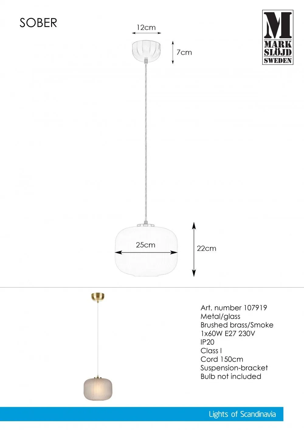 Markslöjd SOBER Beltéri függeszték E27 20W füst