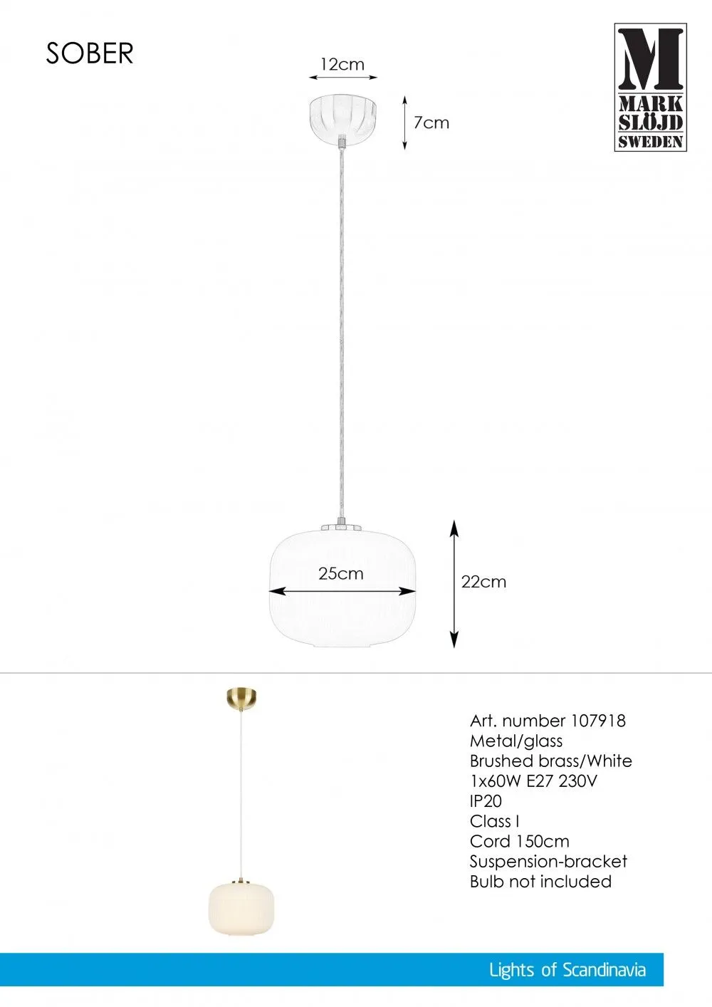 Markslöjd SOBER Beltéri függeszték E27 20W fehér