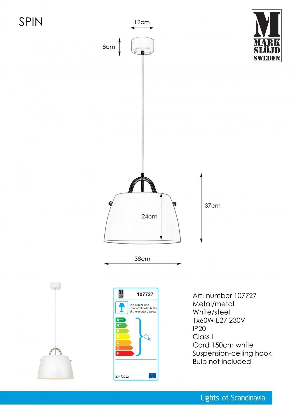 Markslöjd SPIN Beltéri függeszték E27 60W fehér