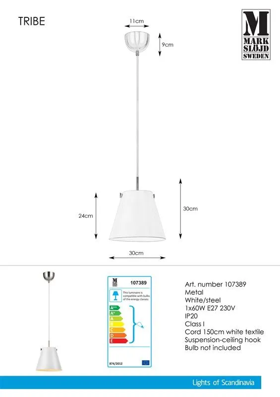 Markslöjd TRIBE Beltéri függeszték E27 60W acél
