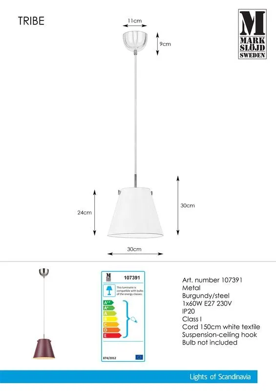 Markslöjd TRIBE Beltéri függeszték E27 60W acél