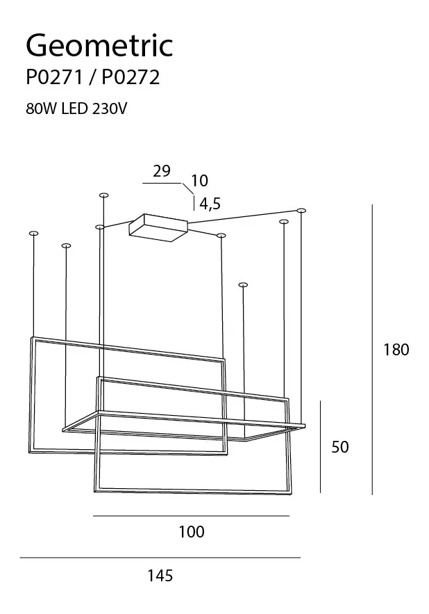 Maxlight GEOMETRIC Beltéri függeszték LED 3x26,6W meleg fehér 6400lm fekete