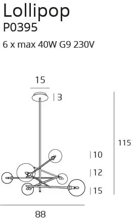 Maxlight LOLLIPOP Beltéri függeszték G9 6x40W fekete