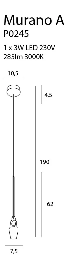 Maxlight MURANO Beltéri függeszték LED 3W meleg fehér 285lm króm