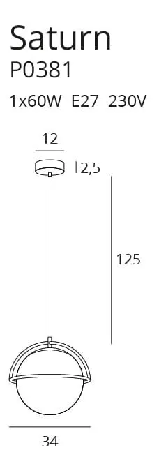 Maxlight SATURN Függeszték E27 60W arany