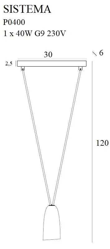 Moc/Power: 1 x 40W G9 230V_x000D_ H: max 120 cm, Ă: 8 cm_x000D_ Podsufitka/canopy: W: 30 cm, D: 6 cm, h: 2,5 cm _x000D_ WykoĹ„czenie/Detail finishing: czarne /black_x000D_ MateriaĹ‚/Material/: metal/ metal_x000D_ Nie zawiera ĹĽarĂłwek/bulbs excluded