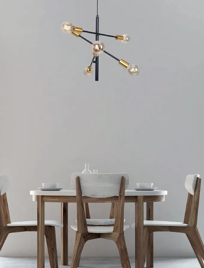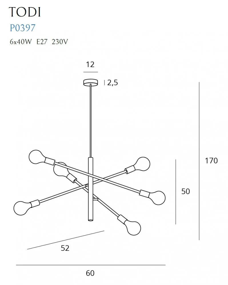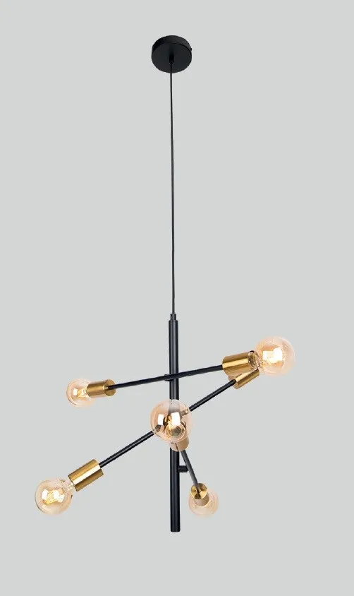 Moc/Power: 6 x 40W E27 230V_x000D_Podsufitka/canopy: à 12 cm, H: 2,5 cm_x000D_W: 52 cm, D: 52 cm, H: max 170 cm, h: 50 cmWykończenie/Detail finishing: czarne, złote/black, gold_x000D_Materiał/Material: metal/ metal_x000D_Nie zawiera żarówek/bulbs excluded
