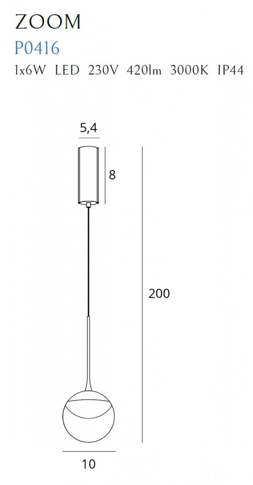 Moc/Power: 1 x 6W LED 230V, 420LM, CRI90, 3000K, IP44_x000D__x000D_ H: 200 cm, à klosza: 10 cm_x000D__x000D_ Podsufitka/canopy: à 5,4 cm cm, H: 8,0 cm_x000D__x000D__x000D__x000D__x000D_ Wykończenie/Detail finishing: czarne/black_x000D__x000D_ Materiał/Material/: metal, akryl/metal, acrylic_x000D__x000D_ Led w komplecie/LED included 3000K_x000D__x000D_ Transformator w komplecie/ LED driver included