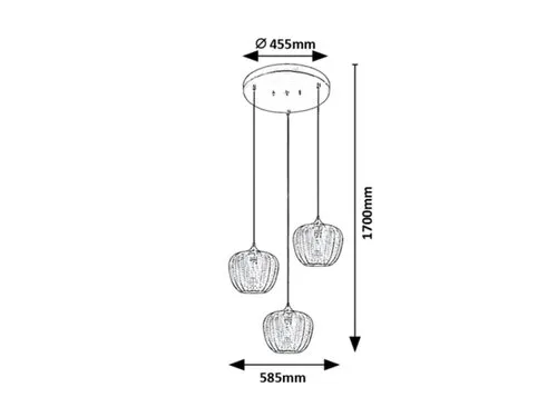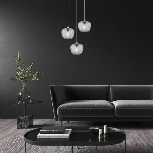 A modern stílusú Monet hármas függeszték nappalink, étkezőnk vagy hálószobánk berendezésének egyszerű, ugyanakkor elegáns kiegészítője lehet. A vasból készült, krómszínű lámpatestet alma formára emlékeztető színezett üvegbúrák egészítik ki, a három lámpafej eltérő magasságban függ. A Monet ezüstszínű textilkábelek és nagyméretű, kerek dísztalp segítségével rögzíthető a mennyezetre. A függeszték három darab, egyenként legfeljebb 40 W teljesítményű fényforrással használható, a foglalatok típusa E27. Ízlésünktől függően választhatunk hozzá meleg vagy természetes fehér fényű fényforrásokat. Ha a hálószobában kap helyet a lámpa, meleg fehér fényű fényforrásokat ajánlunk hozzá, amelyek segítenek meghitt, otthonos hangulatot teremteni. A Monet hármas függeszték méretei a következők: szélessége 585 mm, magassága 545 mm, belógása 1700 mm, beépítési átmérője 455 mm. Ezt a modellt fényforrások nélkül szállítjuk.