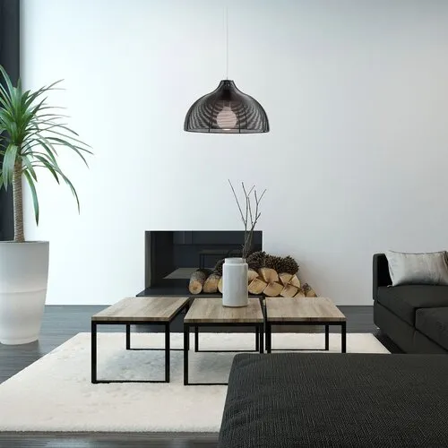 Modern megjelenésű függeszték 1 db foglalattal. 120 cm lelógású, 40 cm átmérőjű, fekete színű, fémből készített test és lámpabúra. A lámpatest E27-es foglalatkialakítású, max. 60W teljesítményű fényforrással, így akár a stílusában tökéletesen illeszkedő, G95-ös, ’nagy gömb’ formájú, energiatakarékos LED izzóval is használható.