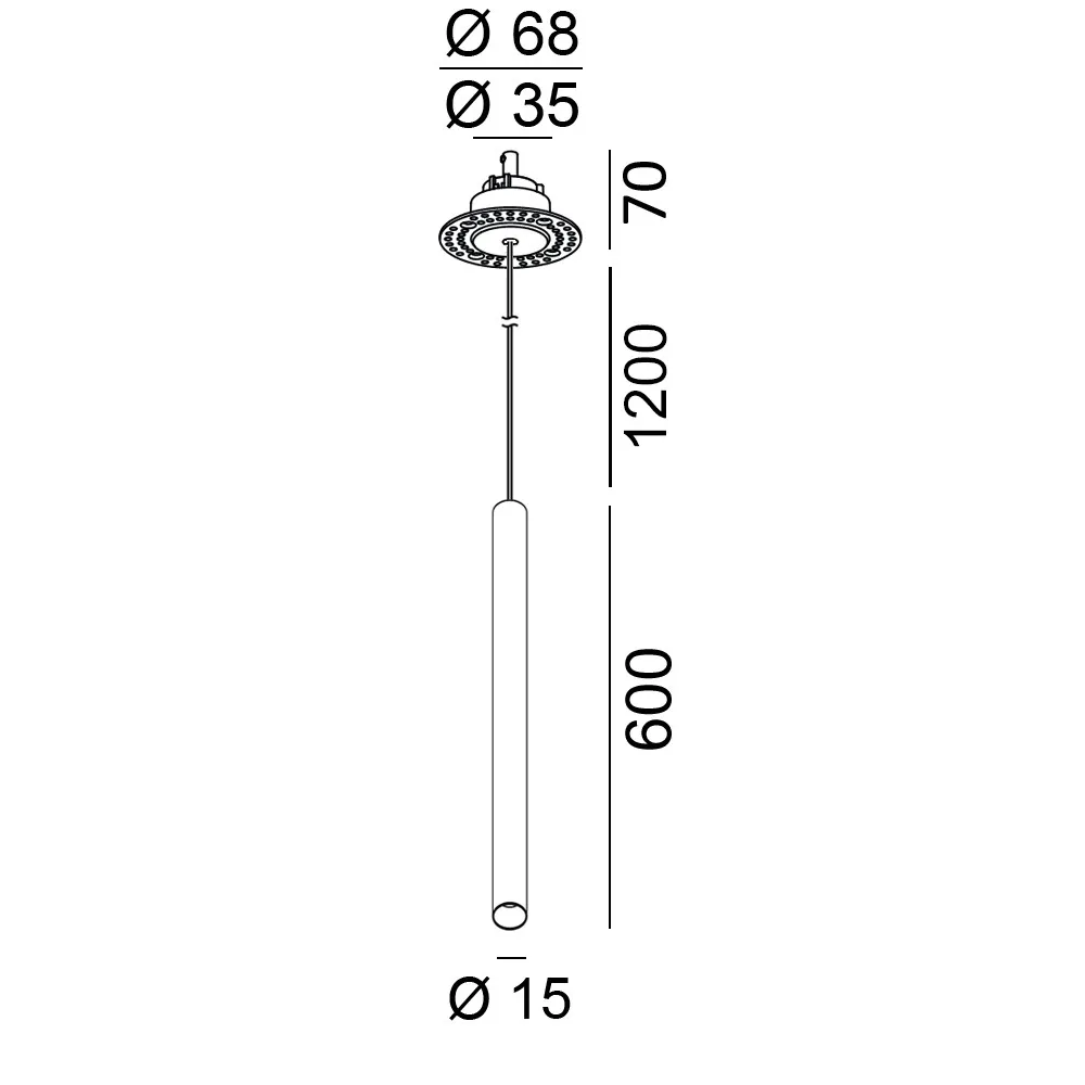 Pendant luminaire with recessed trimless base TUB XS P NANO BASE, D15mm, H600mm, CREE 2,4W LED, 137 Lm, 3000K, 20fok, CRI>90, 700 mA, IP 20, brass color - LTX-03.0161.2.930.BR