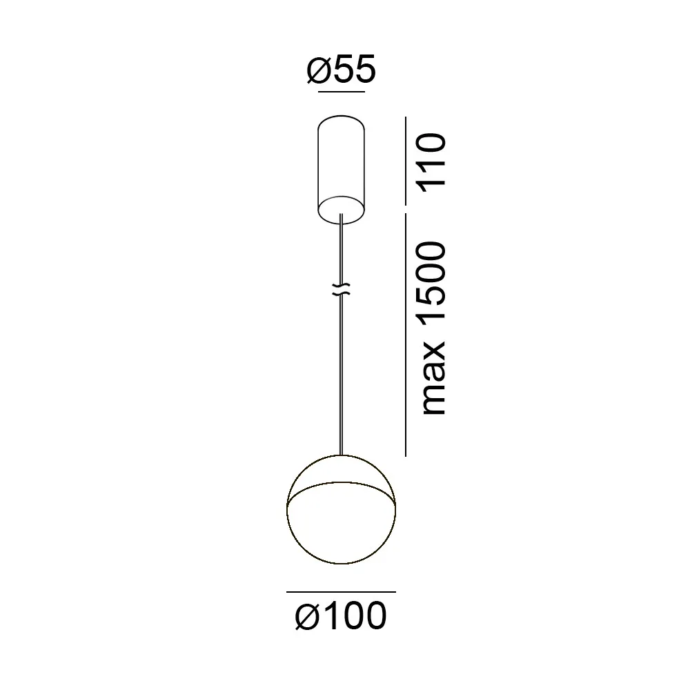 Pendant luminaire with surface base BALL M P, D100mm, H1500mm, CREE 7W LED, 700mA, 590lm, warm white 3000K, CRI>90, sand white color - LTX-03.1000.7.930.WH
