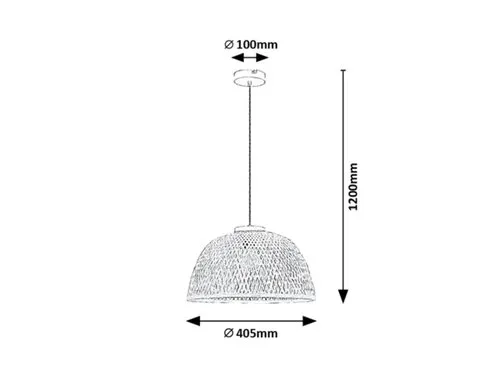 A természetes megjelenésű Rattan függesztéket elsősorban a skandináv stílus kedvelőinek ajánljuk a nappaliba. A fémből és fából készült modellt ernyő formájú, natúr rattanbúra egészíti ki, és kisméretű kerek dísztalp segítségével rögzíthető a mennyezetre. A szőtt, világos árnyalatú rattan sok fényt enged át, így az izzó fényereje jól érvényesül. A lámpa egy darab legfeljebb 25 W teljesítményű fényforrással használható, a foglalat típusa E27. Ízléstől függően választhatunk ehhez a modellhez meleg vagy természetes fehér fényű fényforrást. Ha az utóbbi mellett döntünk, modern, tiszta hatást érhetünk el a nappaliban, amely jól illik otthonunk egyik nagy forgalmú helyiségéhez. A Rattan függeszték méretei a következők: átmérője 405 mm, belógása 1200 mm, beépítési átmérője 100 mm. Ezt a modellt fényforrás nélkül szállítjuk.