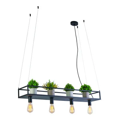 REALITY Fiore 4lt pendant metal,all in sand black finish4*E27 bulb not incl.size: L:1000,W:230, H100mm total H:1200mm