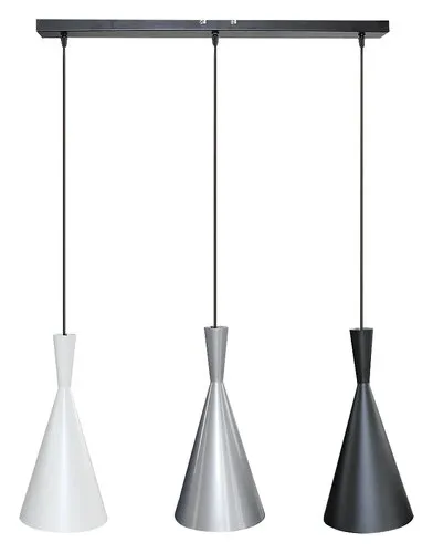 Az indusztriális stílus képviselői közé tartozó Trincola hármas függeszték remek választás lehet modern nappalinkba, étkezőnkbe vagy hálószobánkba. A teljes egészében fémből készült lámpát a három különböző színű (fehér, szürke és fekete), gúla formájú búra teszi igazán egyedivé. A hosszú, szögletes dísztalphoz erősített, lefelé csüngő lámpafejek sorban, egymás mellett helyezkednek el. A Trincola három darab, egyenként legfeljebb 40 W teljesítményű fényforrással használható. A foglalatok típusa E27. A függesztékhez választhatunk természetes vagy meleg fehér fényű fényforrásokat. Ha a hálószobában kap helyet, meleg fehér fényű fényforrásokat ajánlunk hozzá, amelyek segítenek meghitt, otthonos hangulatot teremteni. A Trincola hármas függeszték méretei a következők: szélessége 700 mm, a búrák magassága 400 mm, átmérőjük 190 mm, a lámpa belógása 1100 mm. Ezt a modellt fényforrások nélkül szállítjuk.