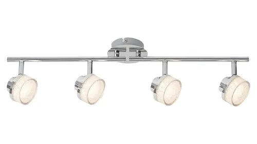 A szatin króm és átlátszó kristály színkombinációban pompázó Padma négyes spotlámpa elegáns darabja lehet modern nappalink vagy hálószobánk berendezésének. A mennyezeti lámpa fém testét cukrozott műanyag búrák egészítik ki, melyek igazán egyedi megjelenést kölcsönöznek ennek a modellnek. A Padma 4 db beépített, energiatakarékos LED fényforrással rendelkezik, melyek 3000 K-es színhőmérsékletüknek megfelelően meleg fehér fénnyel világítanak. A fényforrások teljesítménye összesen 20 W, fényerejük 1600 lumen, élettartamuk pedig mintegy 20 000 óra. A Padma négyes spot lámpa teljes hossza 600 mm, mennyezettől mért távolsága 150mm. Erre a modellre 5 év garanciát vállalunk.