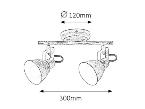 Vintage stílusú mennyezeti spotlámpa 2 db foglalattal. 30 cm széles, antik barna színű fém lámpatest és pozícionálható lámpabúrák. A mennyezeti lámpa E-14-es foglalatú, max. 2x 40W teljesítményű energiatakarékos fényforrásokkal használható.