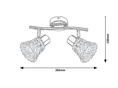 A klasszikus stílusban készült Hestia kettes spotlámpa nappalink vagy hálószobánk berendezésének elegáns darabja lehet. A krómszínű, fém lámpatestet átlátszó üvegbúrák egészítik ki, a lámpa kerek dísztalp segítségével rögzíthető a mennyezetre. A harang alakú búrák érdekességét hullámzó felületük csavart hatása adja. A Hestia két darab, egyenként legfeljebb 40 W teljesítményű fényforrással használható, a foglalatok típusa E14. Ha a meghitt, otthonos hangulatot szeretnénk erősíteni, válasszunk hozzá meleg fehér fényű fényforrásokat. A Hestia kettes spot lámpa méretei a következők: szélessége 265 mm, magassága 135 mm, mennyezettől mért távolsága 150 mm. Ezt a modellt fényforrások nélkül szállítjuk.